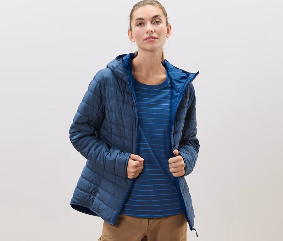 - Côté lisse avec technologie DryProof : étanche avec coutures adhésives ; le matériau supérieur est respirant et supporte une colonne d’eau allant jusqu’à 5'000 mm