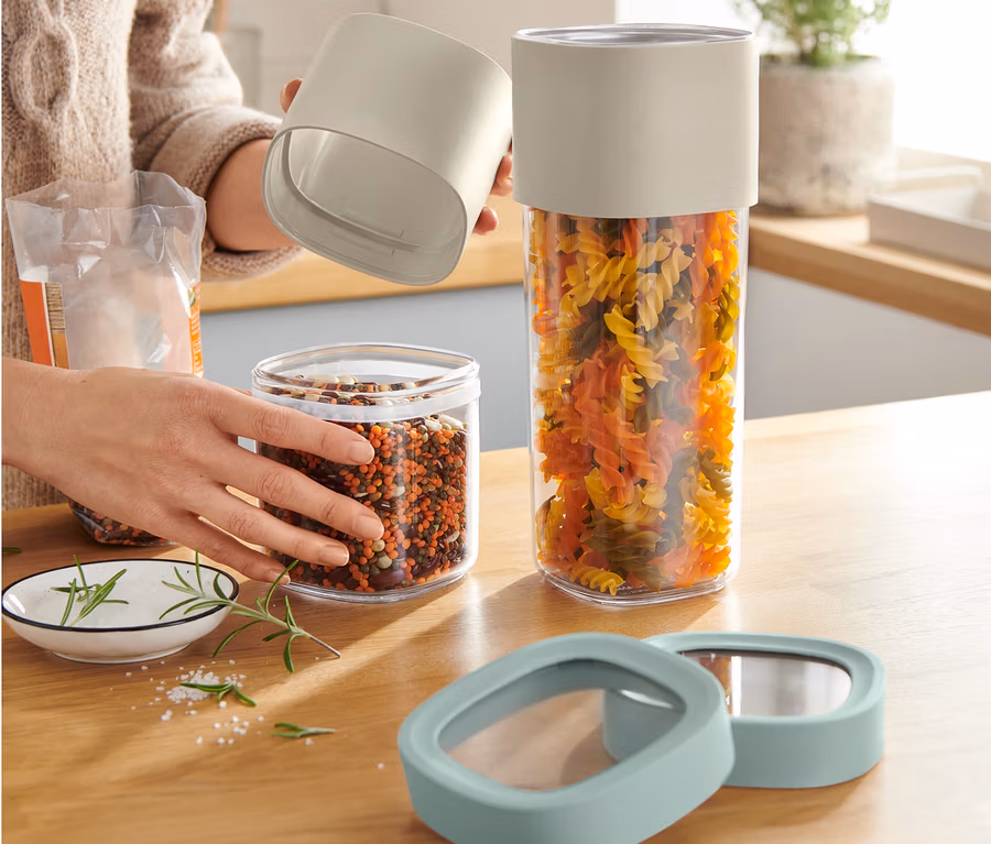 - Volume réglable en tournant l'extension - petit récipient de 600 avec 850 ml, grand récipient de 1350 avec 1600 ml