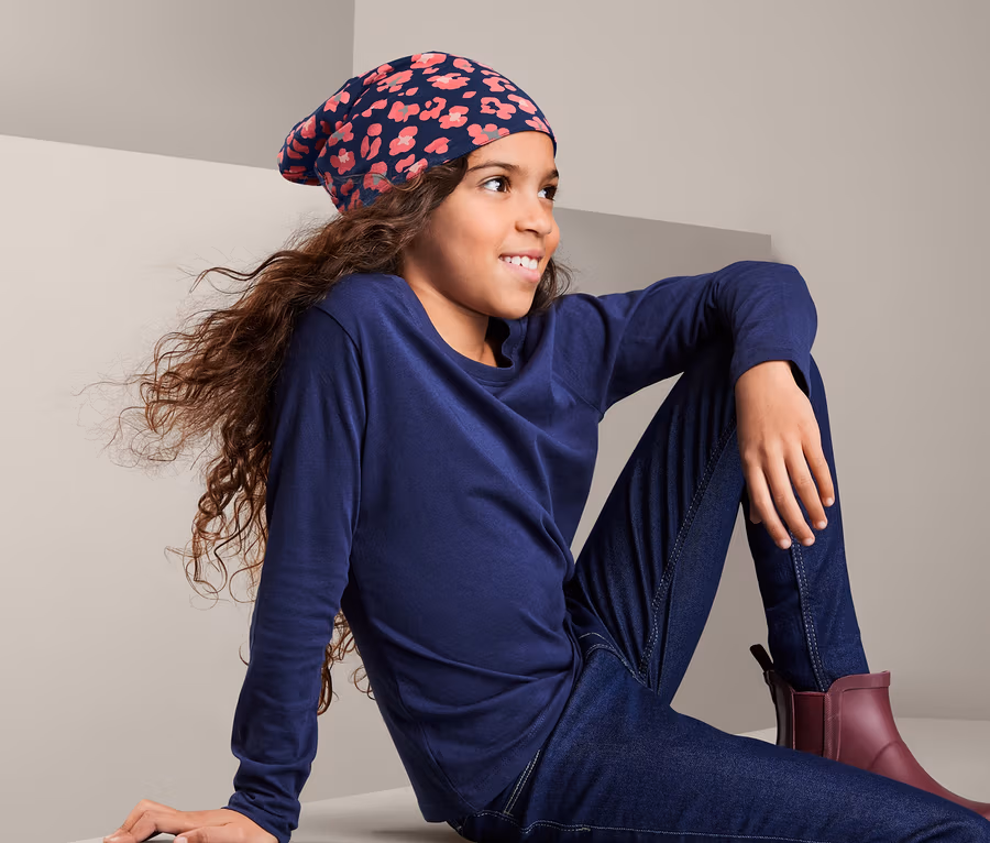 Les enfants et les tout-petits adorent jouer et se défouler dehors. L’air frais fait toujours du bien, à moins que le vent ne soit trop frais et qu’ils n’attrapent froid à la tête. Ce bonnet beanie est alors idéal. Grâce à sa haute teneur en coton bio ainsi qu’au jersey simple, doux et souple, il offre un maintien parfait et est agréable à porter sur la petite tête. L’élasthanne assure une bonne résistance à la déformation et garantit un confort supplémentaire. Le bonnet comporte deux côtés différents, ce qui permet de créer un autre look avec chaque tenue.