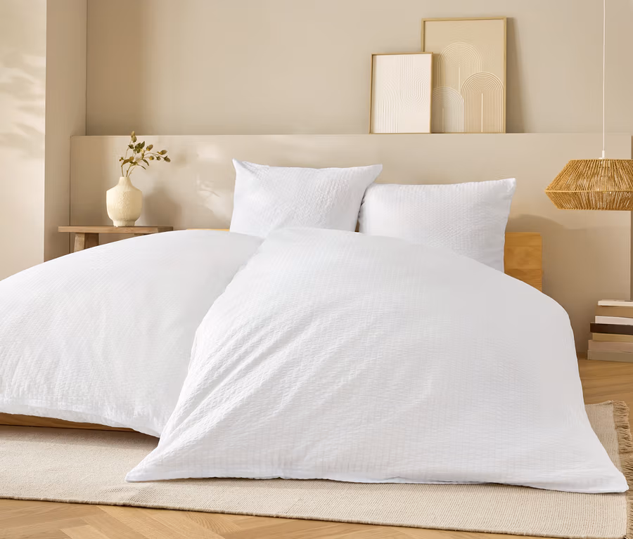 Parure de lit en seersucker, blanc, taille normale