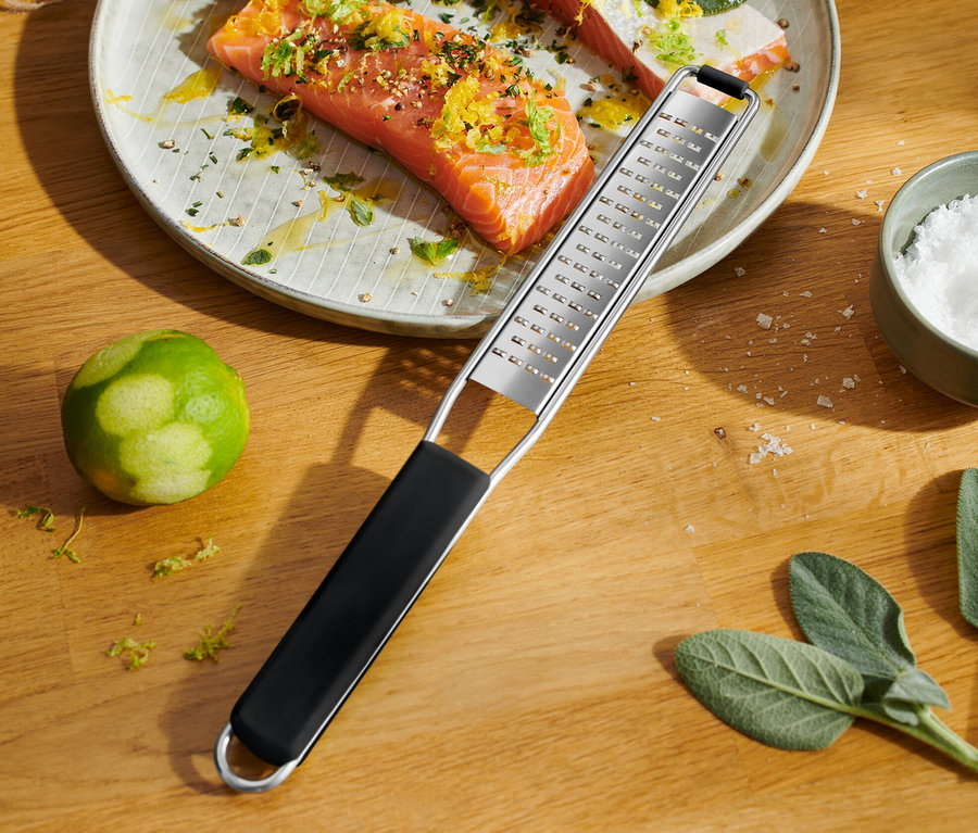 - Arceau en acier inoxydable avec revêtement en silicone antidérapant : idéal pour un appui sûr sur le plan de travail ou dans un saladier