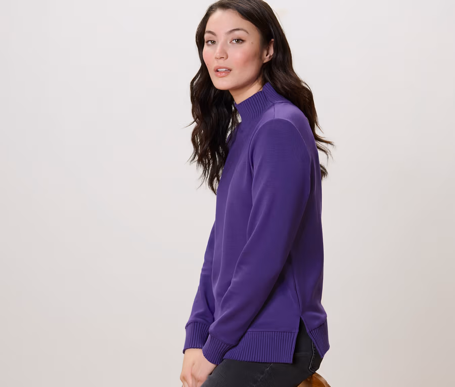 - Larges bords côtelés au col, aux extrémités des manches et à la base