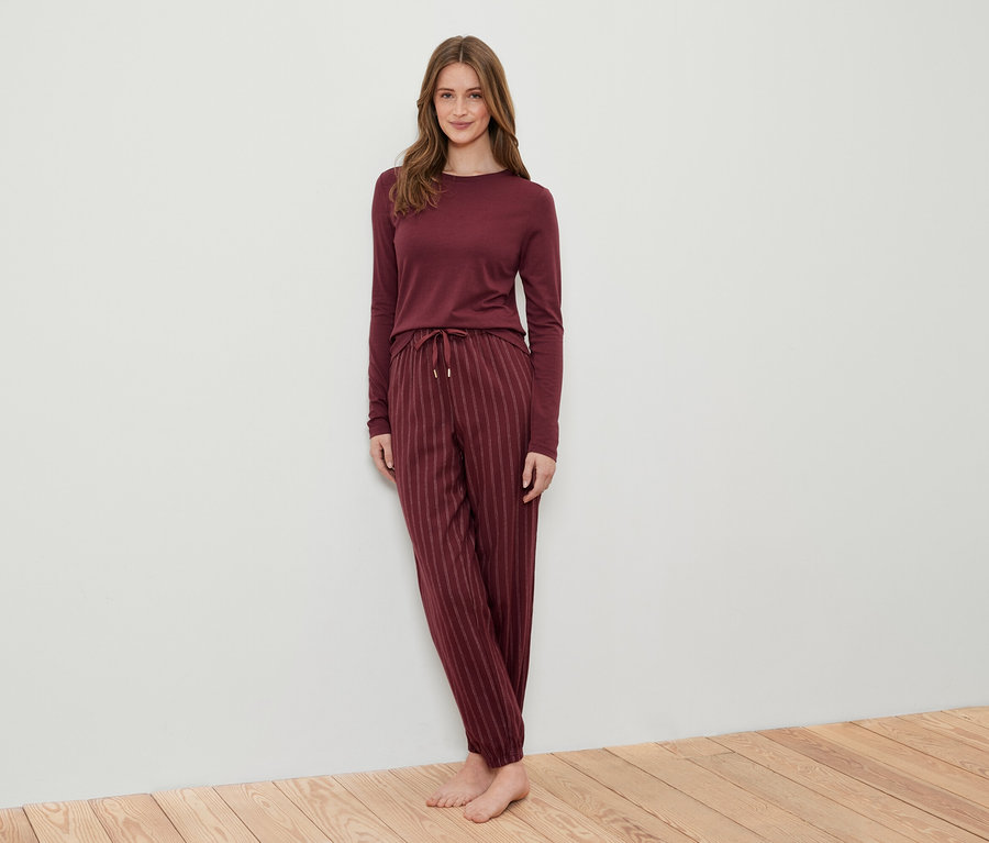 - Pyjama avec haut en mélange de coton et de modal doux, pantalon en flanelle de coton douce