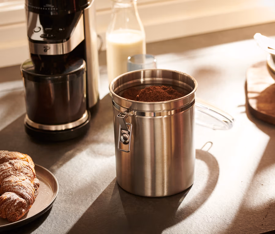 Dans la boîte à café en acier inoxydable à fermeture hermétique, le café reste frais et aromatique longtemps, même une fois l’emballage ouvert.