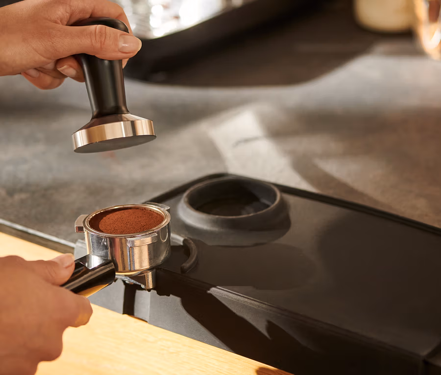pour un expresso parfait, le café moulu doit entre autres être bien tassé de façon homogène. Grâce au tasseur adapté, le café moulu est placé avec une bonne pression et bien comprimé. Un café moulu tassé de manière homogène optimise la durée d’écoulement souhaitée de l’expresso pour le meilleur déploiement des arômes.