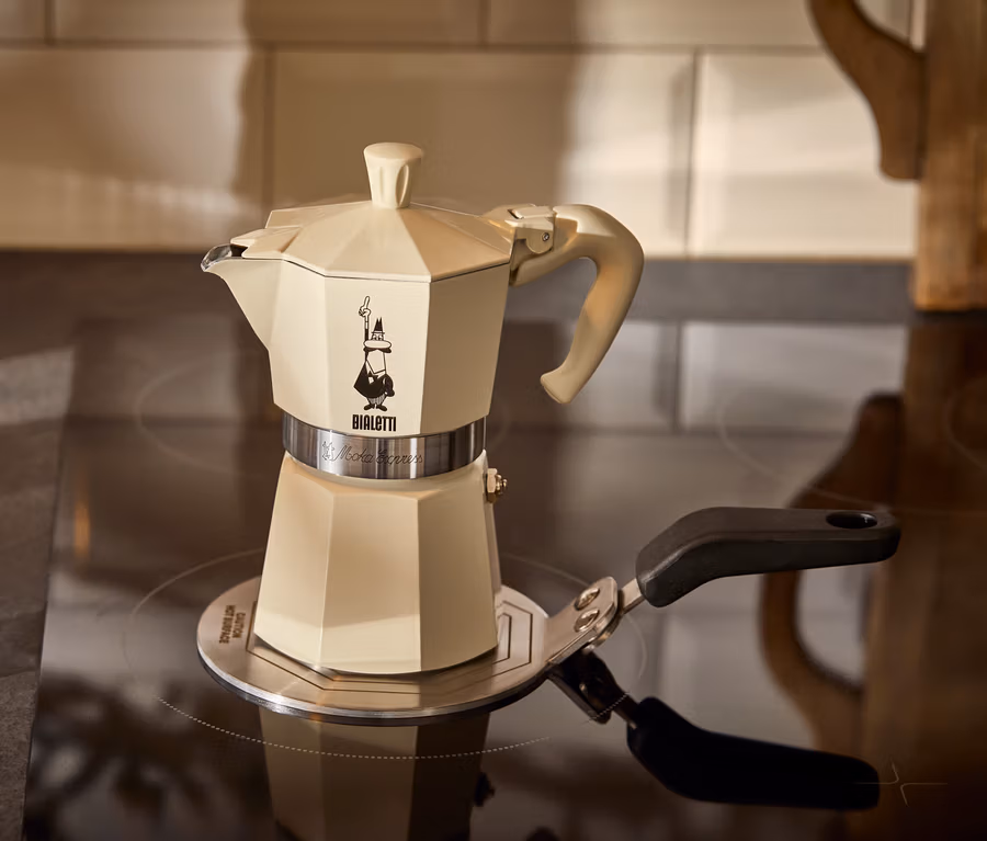 La cafetière Bialetti Moka Express est également adaptée à l’induction lorsqu’elle est combinée à la plaque d’adaptation à induction « Bialetti » (https://www.tchibo.de/products/234305387782).